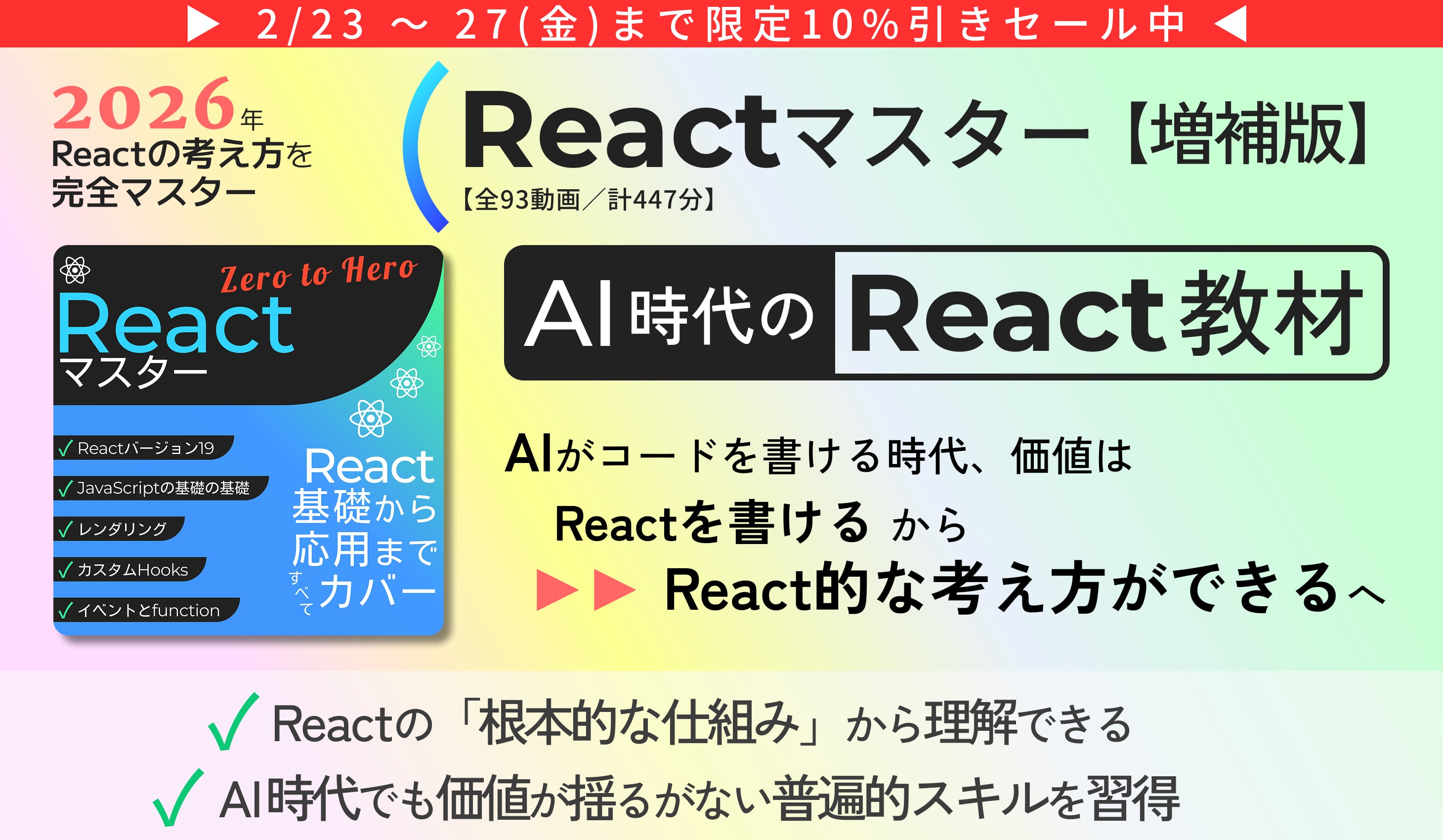 【対象者】HTML/CSSの学習を終えた人(JavaScriptの知識不要)/React初級者から中級者
